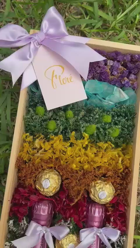 Ideal para tener una cita perfecta, es un box elaborado con flores secas de colores morado, celeste, verde, amarillo, anaranjado, rojo y blanco, cuidadosamente seleccionados para sorprender a esa persona especial 🥰