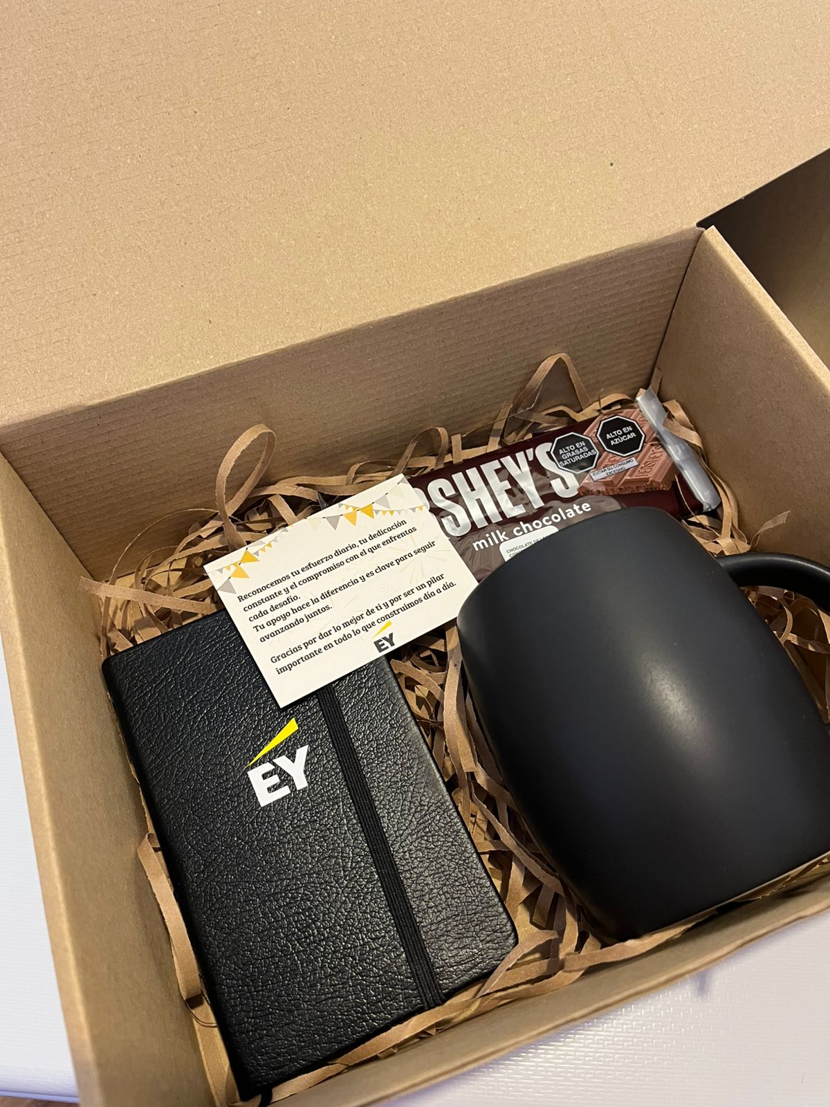 Presentado en una caja ecológica con relleno decorativo, cuidando cada detalle para transmitir profesionalismo, aprecio y estilo.
